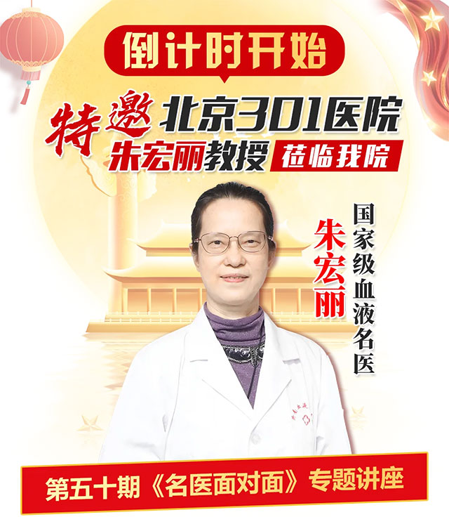 我国血液病诊疗领域的权威力量、中国人民解放军总医院(301医院)朱宏丽教授,将带着精湛医术与深厚经验,亲临济南血液病医院,开展为期一天的“国庆特需联合会诊”活动,为广大血液病患者送上一份特殊的“健康厚礼”。
